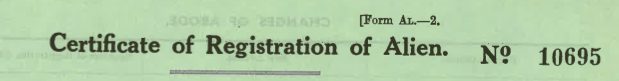 A couple of years ago while undertaking some family research I discovered a file held by ArchivesNZ in relation to my Great-Aunt. The file contained my Aunt’s ‘Certificate of Registration’ and a Report from the ‘Aliens Authority’ which included the following report by Mr F.L.G West: